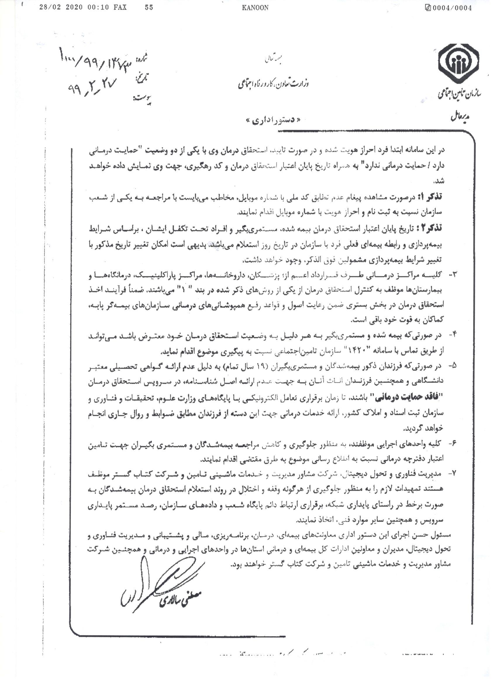 وزیر محترم سازمان تعاون کار و رفاه اجتماعی