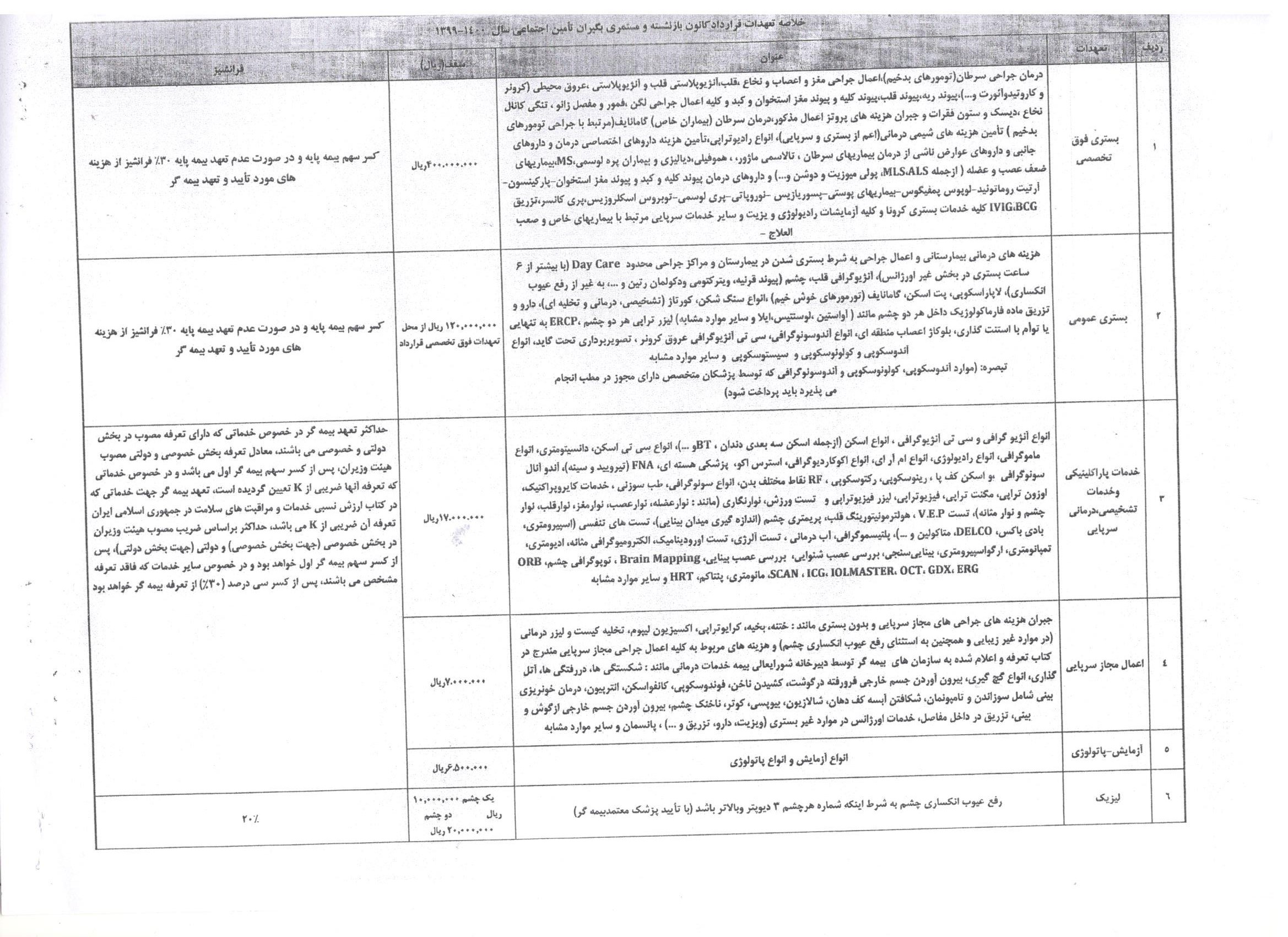 خلاصه تعهدات قرارداد کانون بازنشسته و مستمری بگیران تامین اجتماعی از تاریخ 97/09/01 لغایت 98/08/30