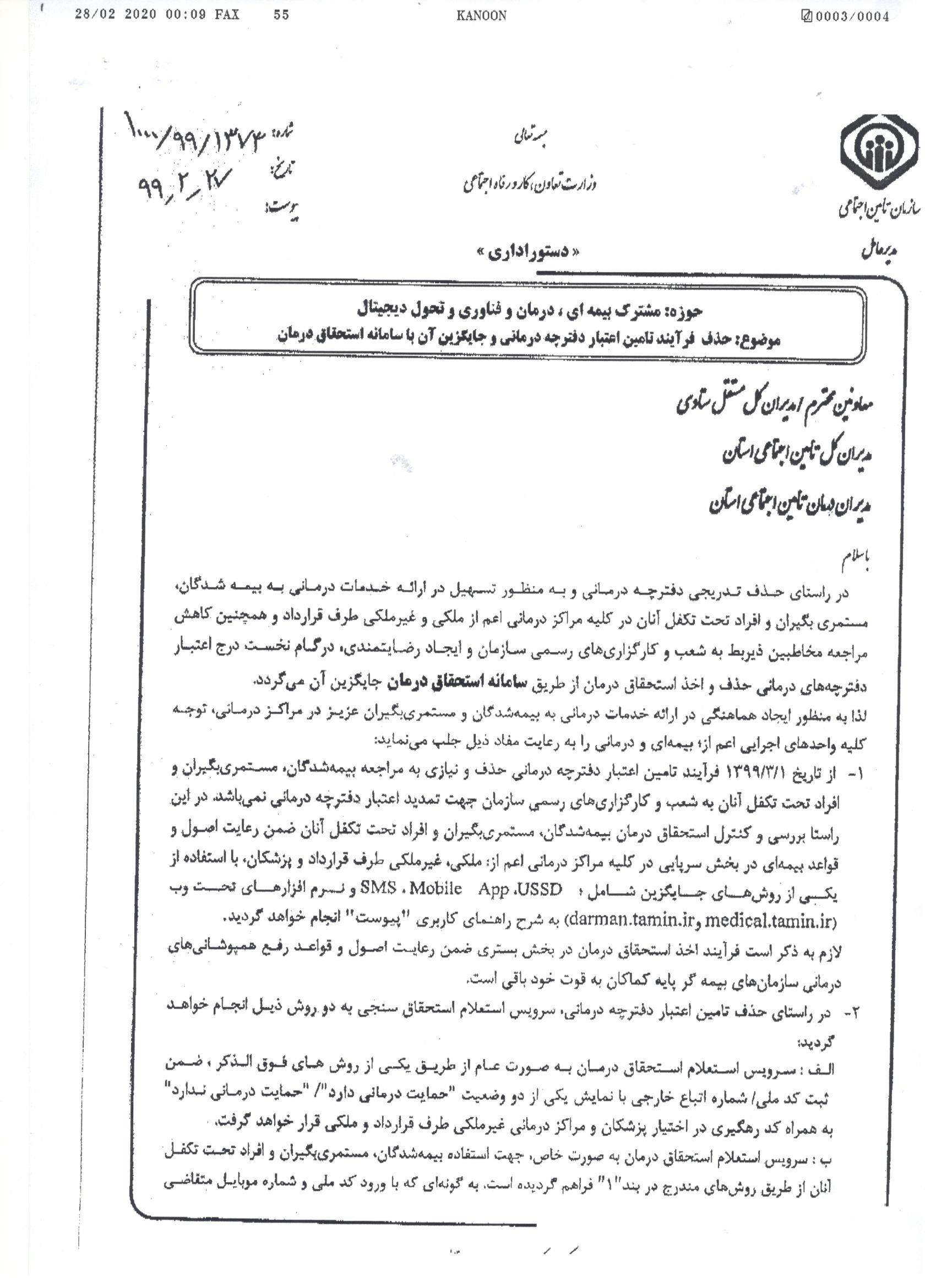 ۱۳- خواهان احیاء دفترچه بیمه بازنشستگان و مستمری بگیران و برقراری تعداد داروهائی که از بیمه حذف گردیده می باشیم و باتوجه به اینکه هزینه های درمان افزایش چشمگیر داشته و سازمان به علت عدم اجرای قانون الزام مشکلات فراوانی برای بیمه شدگان و بازنشستگان ایجاد و فراهم کرده سریعاً از مدیران درمان سازمان تأمین اجتماعی خواستار رسیدگی فوری را داریم.